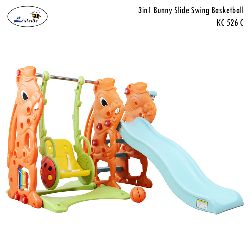 - Mainan perosotan dan ayunan yang dilengkapi dengan ring basket
